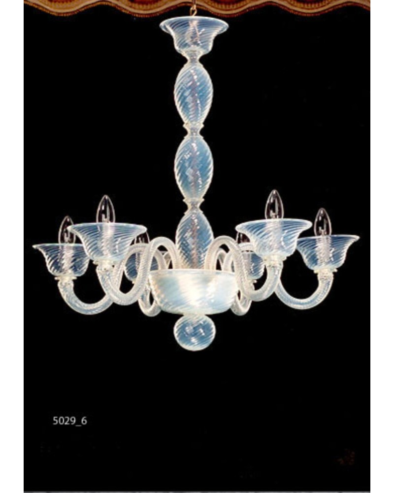 Lustre contemporain en Cristal de Murano à 6 branches, décoration opaque élaboration Rigadino. Les dimensions sont de 60 centimètres de hauteur sur 50 centimètres de large. Ce lustre est de nuances blanche avec la possibilité de changer de couleur sur demande, plusieurs mesures sont disponible comme indiqué sur la photo ainsi que les prix. Fabriqué à la main par d'authentiques maitres souffleurs de verre de Murano. Tout nos lustre sont Réalisé à la commande avec un délai de 30 jours. Vous pouvez nous contacter pour les choix de coloris ou de dimensions différentes. Il sont certifiés authentiques et tres bien emballés pour le transport.