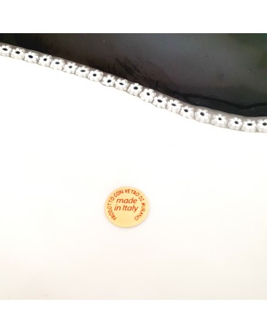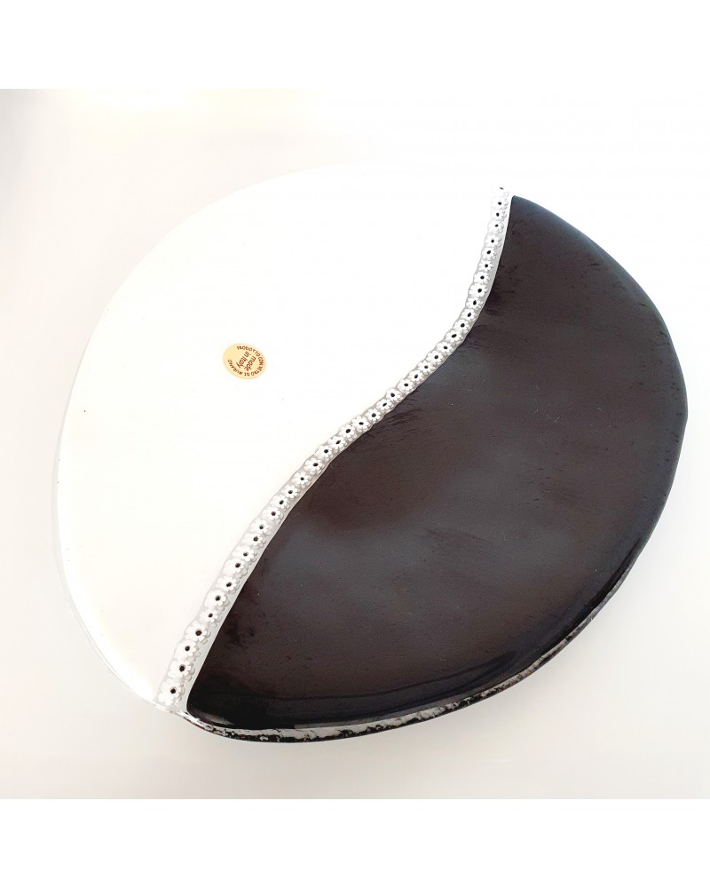 Plat de forme ovale de la collection yin yang, de couleur noir et blanc, la matière est en verre de Murano et murrine. la dimension est de 24 x 20 centimètres, Ils sont faits à la main par nos artisans italiens. Tout nos plats sont Certifiés authentiques. Chaque model est unique.