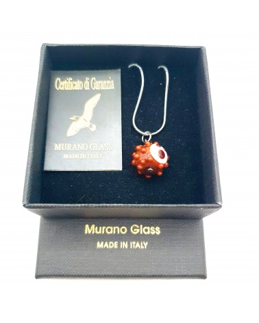 Pendentif hérisson en verre de Murano. La chaîne en acier inoxydable a une longueur de 46 centimètres et le hérisson a un diamètre de 1,5 centimètres. Tout nos bijoux sont faits à la main par nos créateurs italiens, ils sont certifiés authentiques made in Italy. Le coffret est offert.