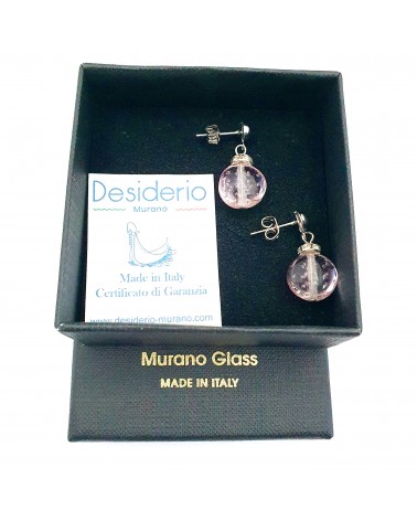 Boucles d'oreilles en verre de Murano nommées Fantasy en forme de perle ronde plate d'environ 1,2 centimètre. De couleur rose, les attaches sont en nickel free. Tous nos bijoux sont faits à la main par nos artisans italiens, ils sont certifiés authentiques.