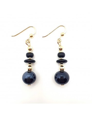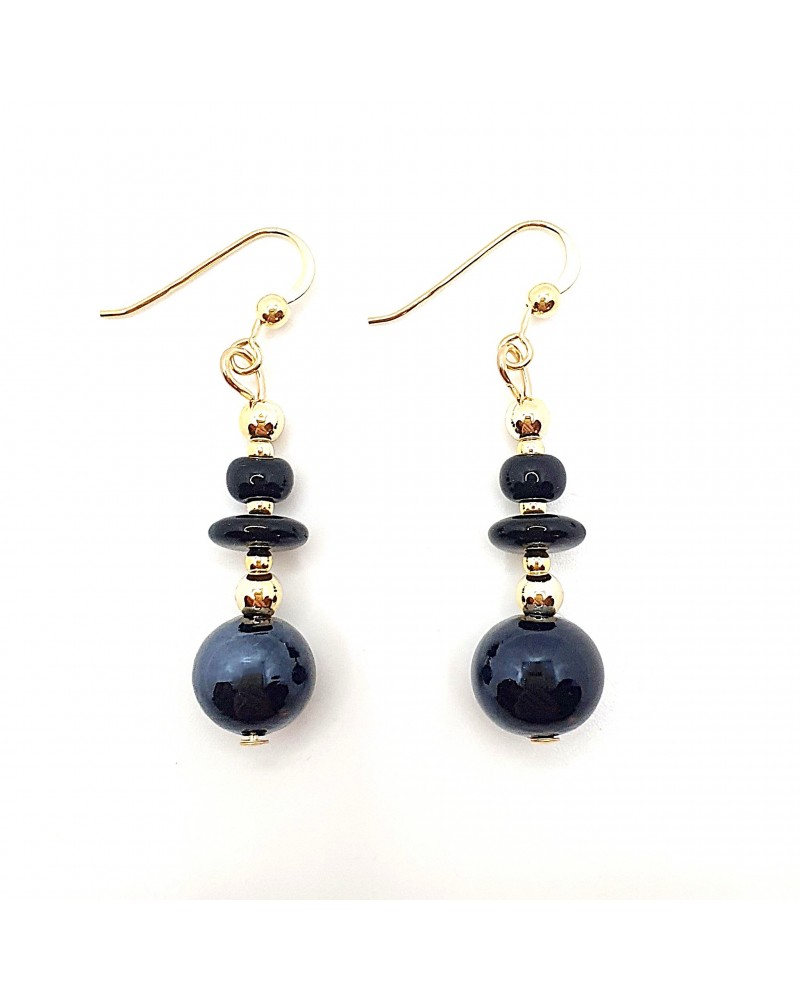 Boucles d'oreilles spritz en verre de Murano, Le métal est en argent 925 doré. Les motifs en verre de Murano sont de nuance noir, des mineraux sont incrustées dans le verre. Tout nos bijoux sont fait à la main par nos créateurs italiens, ils sont certifiées authentiques made in Italy. Le coffret est offert. 100% anti allergique.
